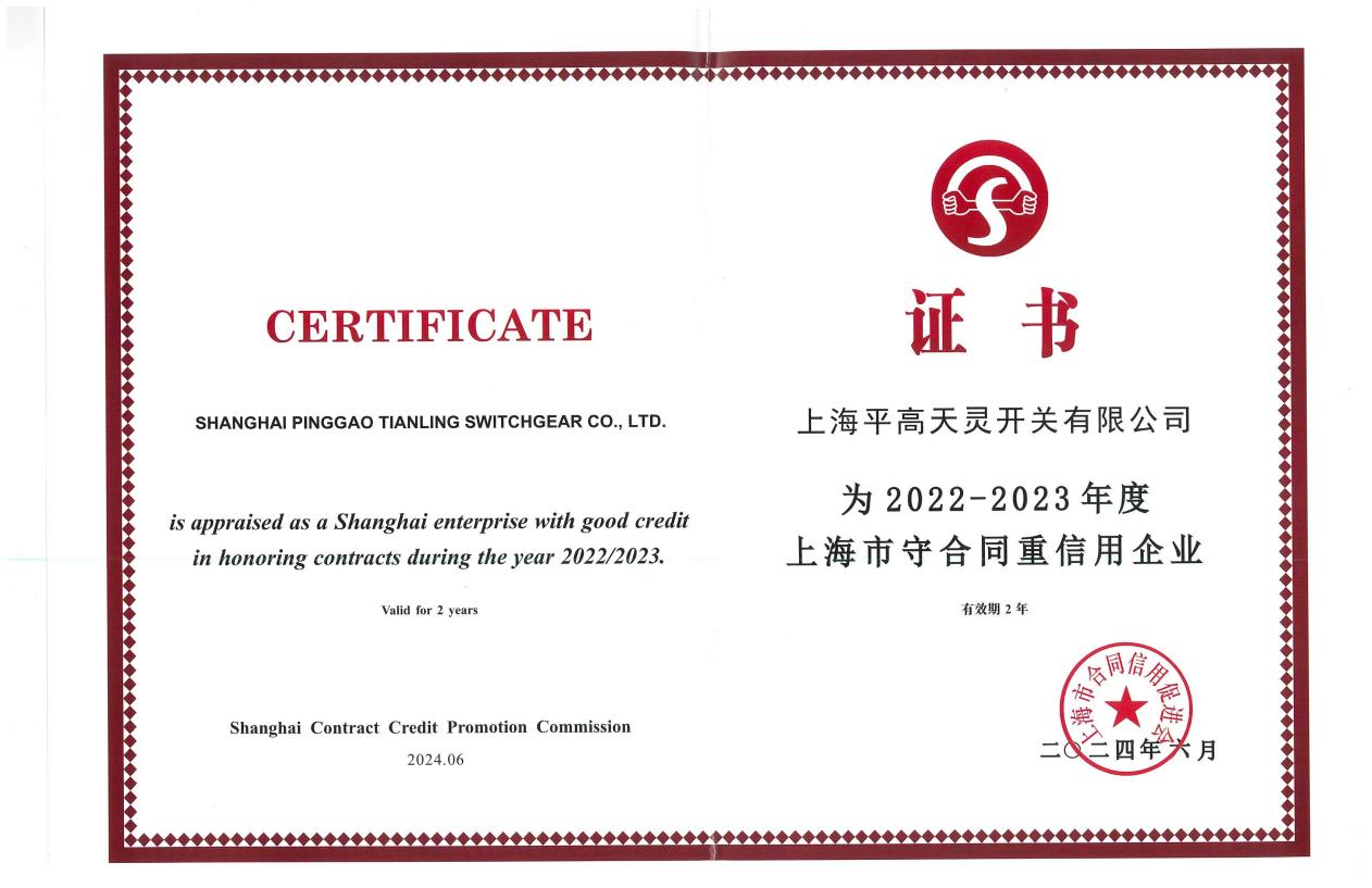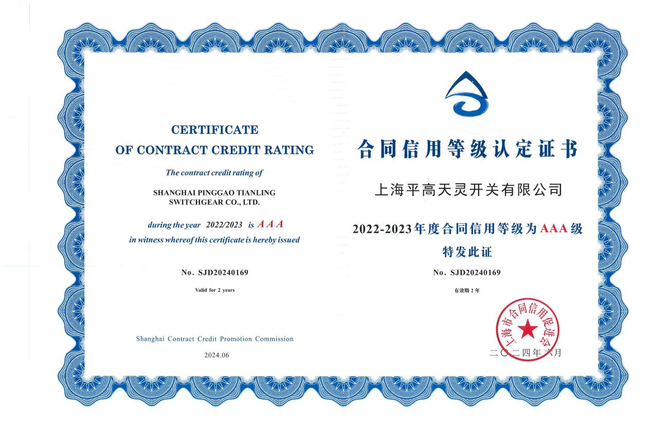 7月23日,從平高電氣所屬上海平高天靈開關(guān)有限公司(以下簡稱“上海平高”)傳來喜訊,上海市合同信用促進(jìn)會公布了2022-2023年度上海市守合同重信用評定的結(jié)果,上海平高獲得守合同重信用企業(yè)和合同信用AAA級企業(yè)證書,這是上海平高連續(xù)5屆榮登榜單。